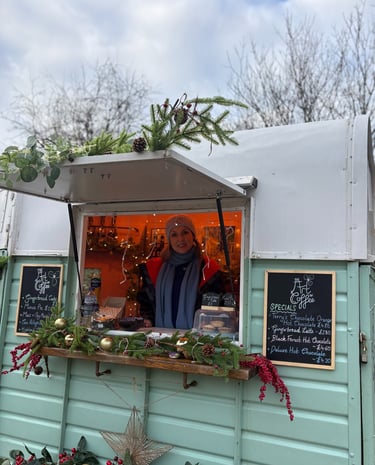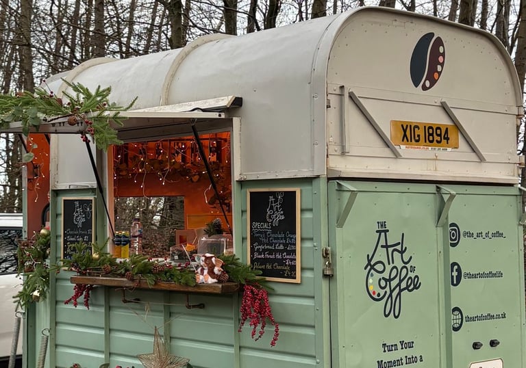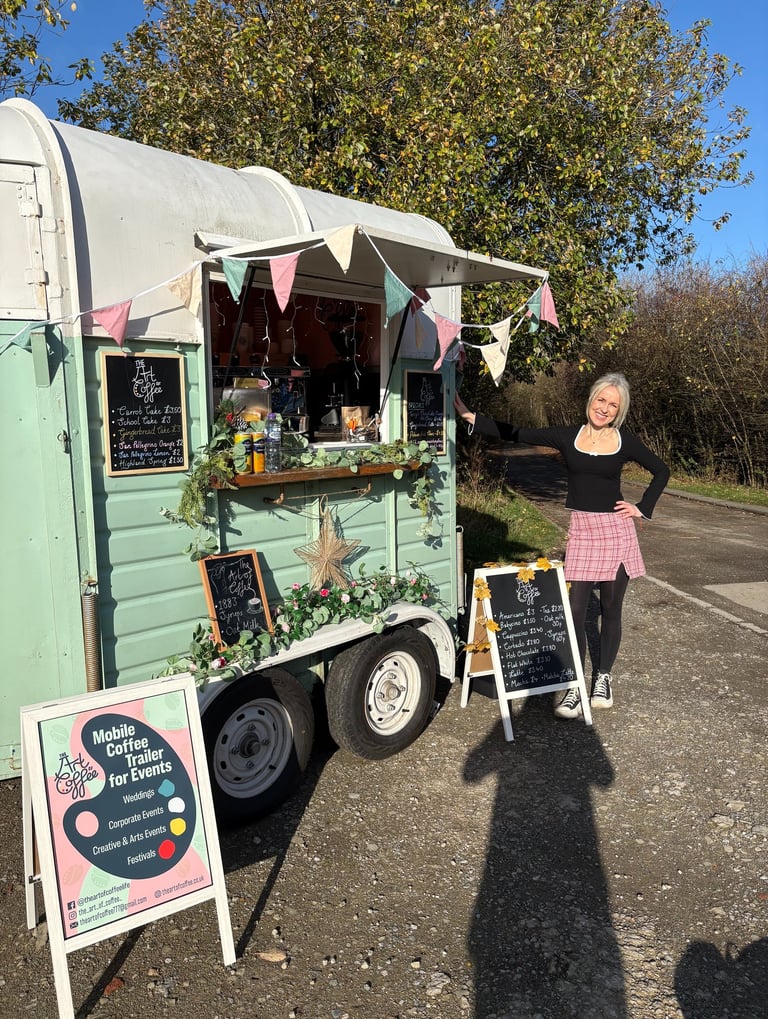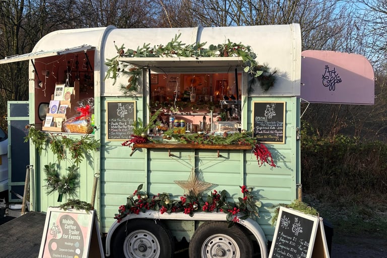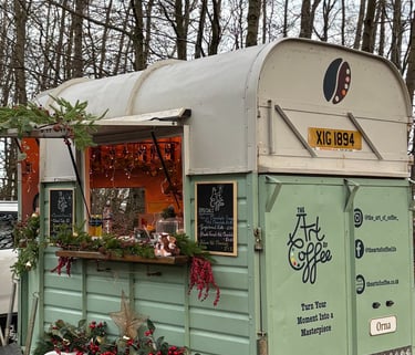 Serving art-inspired coffee from a cosy vintage horse trailer - every cup a little masterpiece.